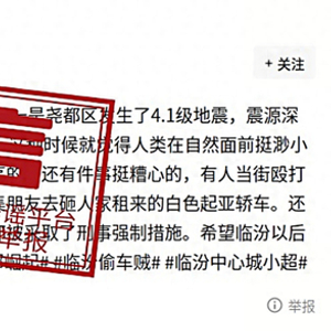 临汾一地发生4.1级地震?发生“砸车斗殴”事件?官方辟谣