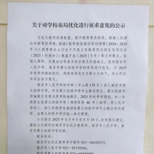 公示期自2025年5月9日至5月15日,如有意见建议,公示期间向南京市玄武区教育局、南京市人民中学、南京市第九初级中学反映。