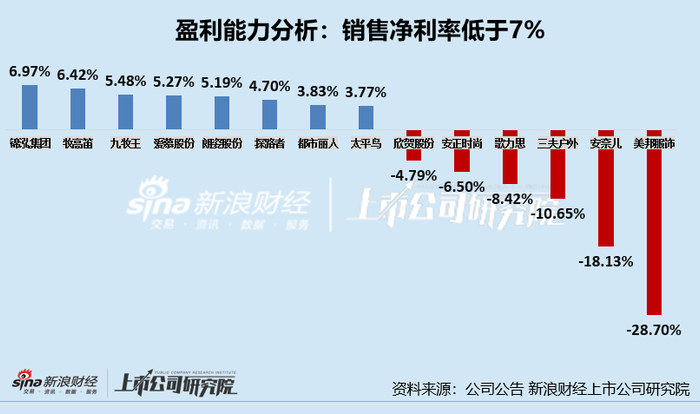 服饰年报|过半数公司净利率不足7% 美邦服饰、安奈儿、三夫户外净利率垫底