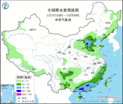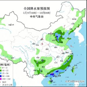 中央气象台5月9日06时发布暴雨蓝色预警:预计,5月9日08时至10日08时,广西东部和南部、广东大部、福建西北部和东南部、海南岛东北部、浙江东南部、华北东部等地部分地区有大到暴雨,其中,广西东部、广东西部等地局地有大暴雨。上述部分地区伴有短时强降水,局地有雷暴大风或冰雹等强对流天气。