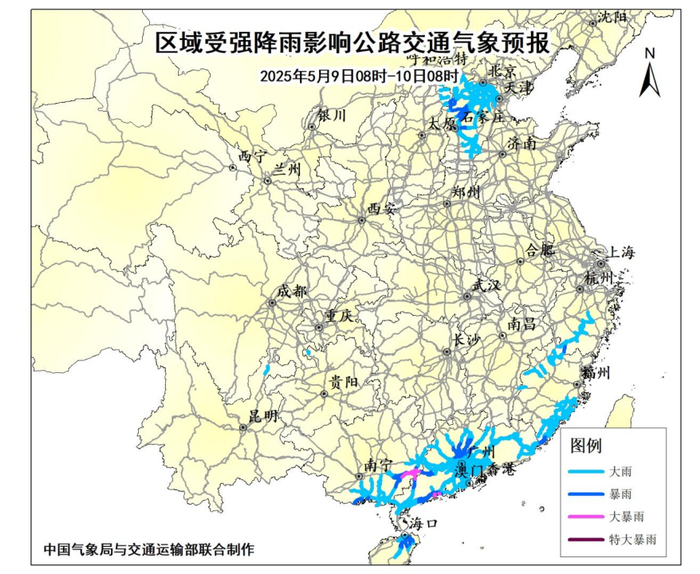 G4京港澳高速、G5京昆高速、G15沈海高速、G65包茂高速、G80广昆高速、105国道、106国道、207国道、324国道、325国道等部分路段通行可能受到影响。