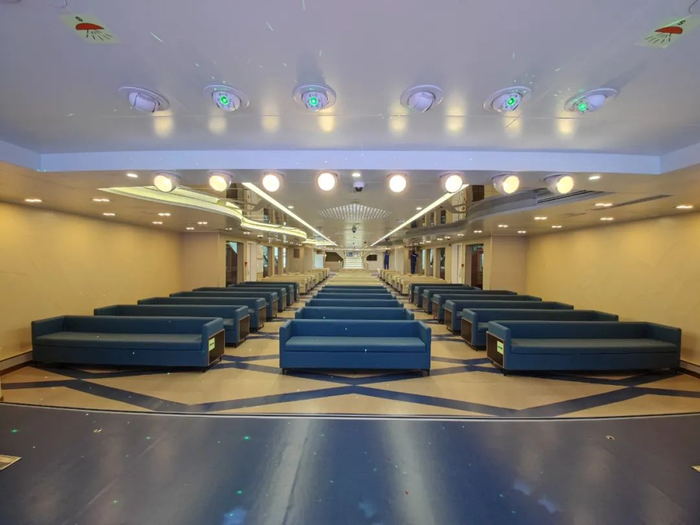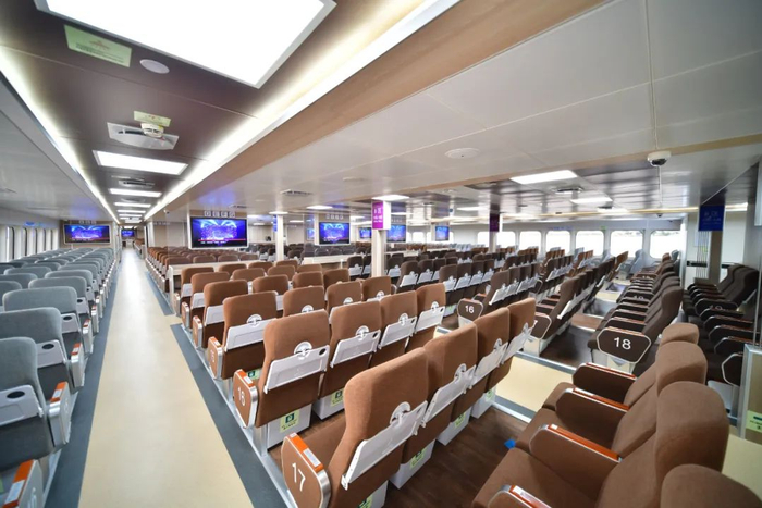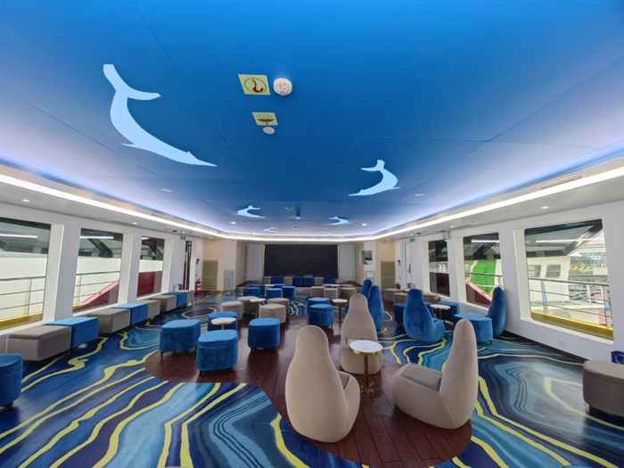 珠海“九洲湾1号”与“蓝色干线1号”以62米船身、近400客位的豪华配置,融合全景玻璃幕墙、多功能娱乐空间,成为粤港澳大湾区滨海旅游的“移动地标”。