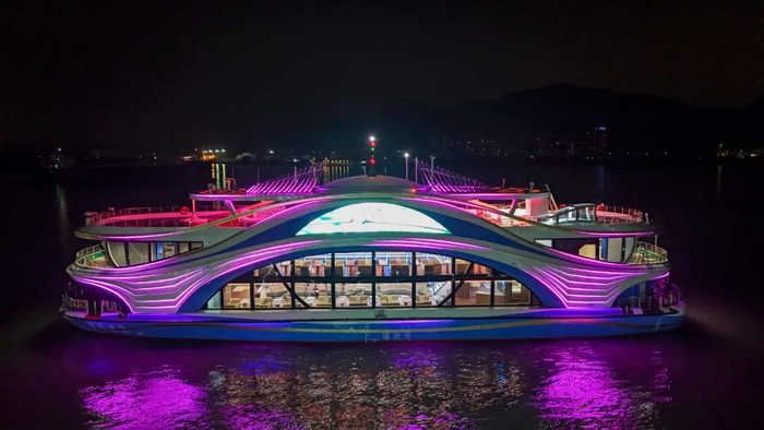 杭州“梦航”号凭借556客位超大载客量及钱塘江文化主题设计,赋能长三角世界级滨水旅游区建设。
