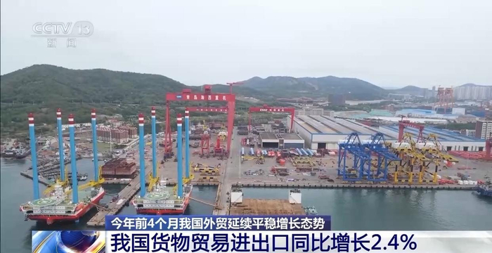 今年前4个月,我国货物贸易进出口实现了2.4%的增长,在当前复杂多变的国际经贸环境下,取得这样的成绩可以说非常难得。前4个月外贸运行有哪些特点和亮点?