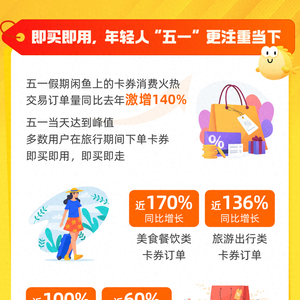 五一闲鱼卡券消费同比增长140%,即买即用,年轻人出游更注重当下