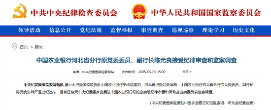 5月9日金融一线消息,据中央纪委国家监委驻中国农业银行纪检监察组、河北省纪委监委消息:中国农业银行河北省分行原党委委员、副行长陈元良涉嫌严重违纪违法,目前正接受中央纪委国家监委驻中国农业银行纪检监察组纪律审查和河北省监察委员会监察调查。