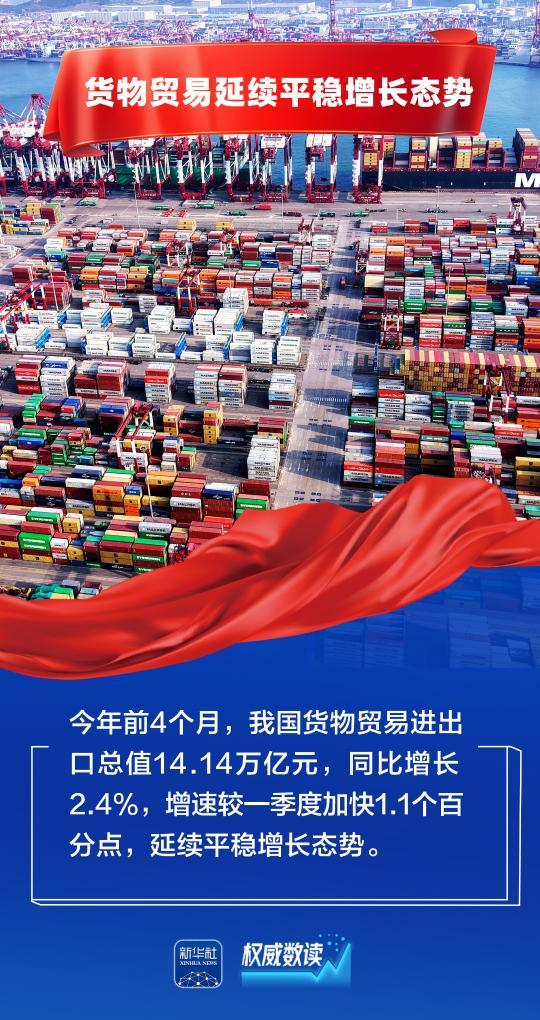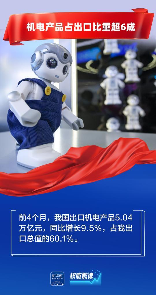 权威数读丨前4个月货物贸易平稳增长,机电产品占出口比重超6成