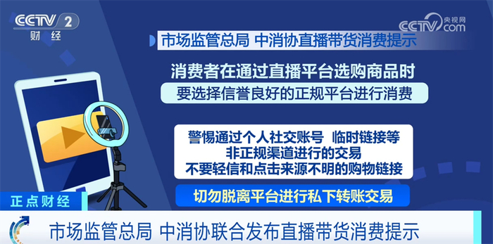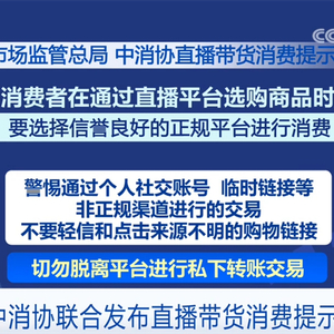 市场监管总局和中消协联合提示,消费者在通过直播平台选购商品时,要选择信誉良好的正规平台进行消费。警惕通过个人社交账号、临时链接等非正规渠道进行的交易,不要轻信和点击来源不明的购物链接。切勿脱离平台进行私下转账交易。