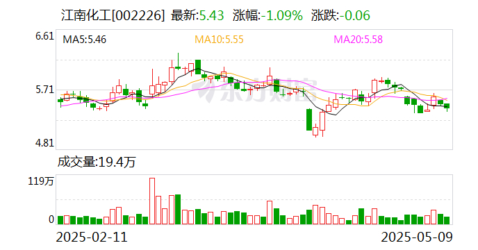 2025年一季度,江南化工实现收入20.13亿元,归母净利润1.46亿元。