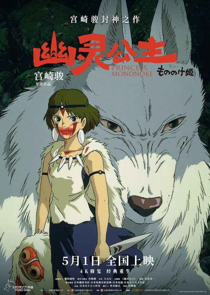 今年五一档上映的日本动画电影《幽灵公主》是宫崎骏的代表作之一。该片于1997年7月在日本上映,2007年2月在电影频道播出中文配音版,此次上映的是4K修复版,并有IMAX版。该片4月23日“极限定档”,排片占比从5月1日的7.3%提高到5日的8.6%,档期内票房6959万元,档期票房占比9.3%,排名第三。