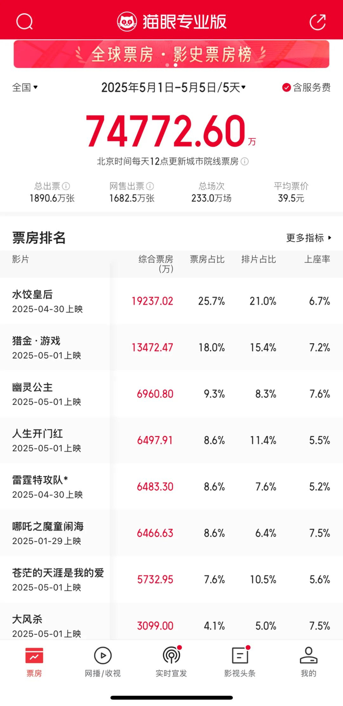 火车跑得快,全凭车头带。今年五一档只有路径依赖,没有头部电影带动大盘起飞,未能在文旅产业和微短剧、短视频和游戏等文化产品的合围中“破圈”,声量被“淹没”。