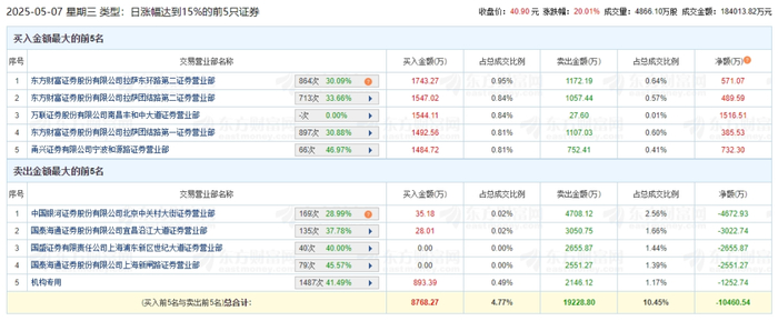 5月6日,大叶股份龙虎榜买卖前5席情况。