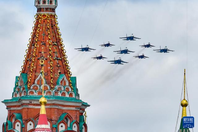5月9日,飞行编队参加纪念苏联伟大卫国战争胜利80周年阅兵式。 新华社发