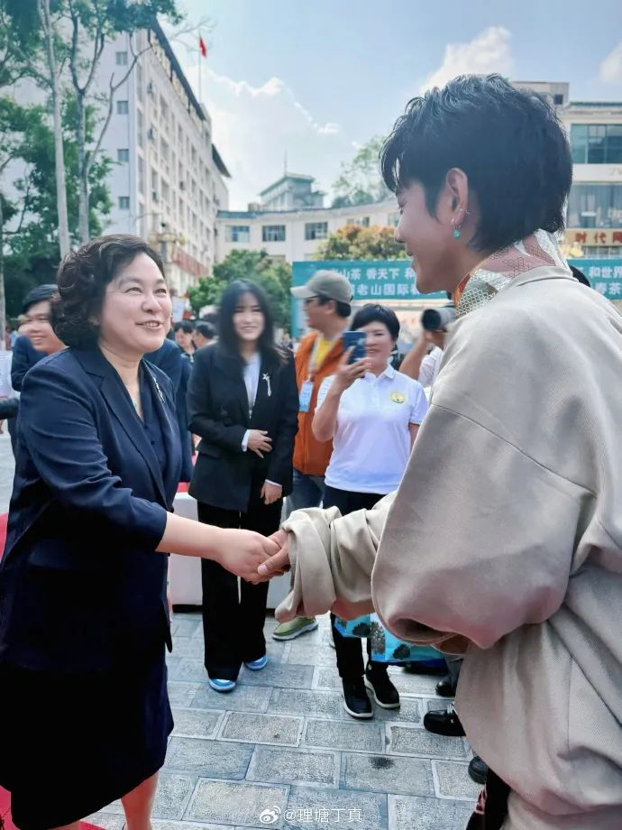 当天上午,第三届“老山国际春茶节”在文山壮族苗族自治州麻栗坡县大王岩广场开幕,华春莹出席活动与丁真同框握手。