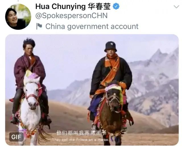 在另一条推文里,华春莹放上了丁真骑马的一个片段,配有丁真的一段自我介绍:“他们都叫我赛马王子。最开心的是和兄弟们赛马。我骑马很厉害的,村里比赛经常拿第一。”↓↓↓