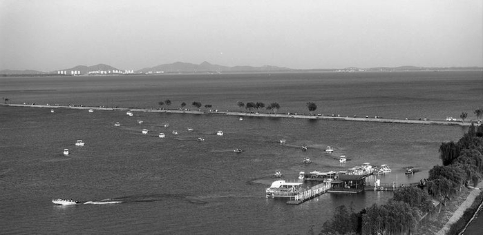 5月1日,市民在合肥湖滨国家湿地公园的十里长堤上漫步游玩。