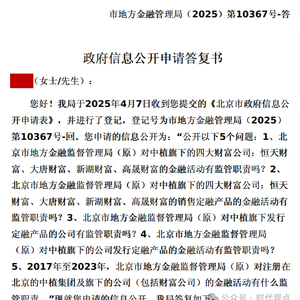有中植系定融债权人反馈,该债权人收到了北京市地方金融管理局的多份答复,包括:市地方金融管理局(2025)第10367号-答、(2025)第10368号-答以及(2025)第11427号-答