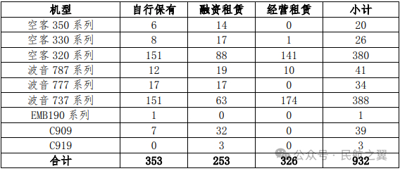 截至3月底,南航运营932架运输飞机,仅比国航少2架飞机,具体保有情况如下: