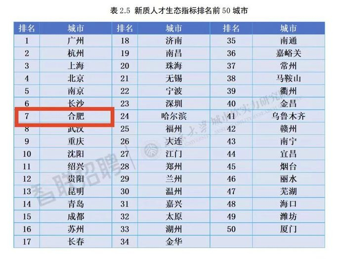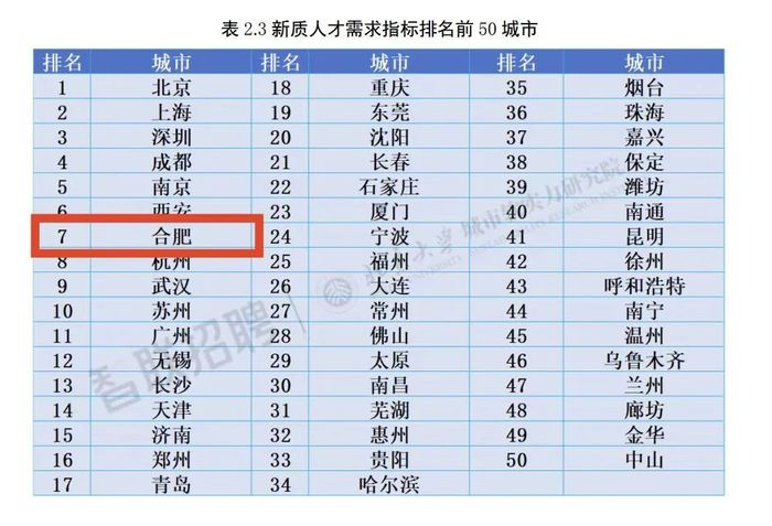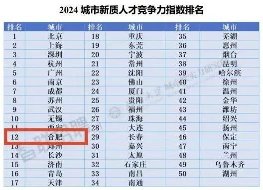 人才竞争力指数发布!合肥第12!
