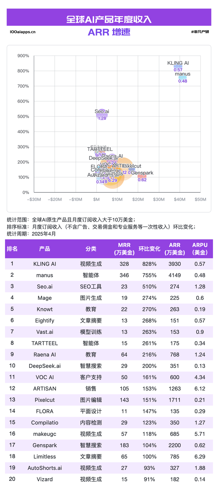 -AI ARR100:AI Web产品的订阅收入TOP100榜单。