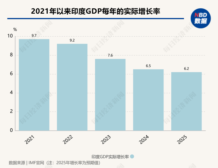 不过,IMF在今年4月小幅下调了印度的经济增速,从6.8%下调至6.2%。