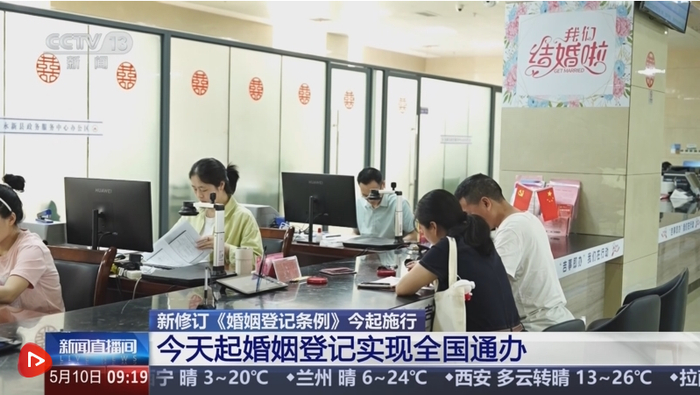 新修订的《婚姻登记条例》10日起施行,一个重要的变化是实行婚姻登记“全国通办”,进一步提高婚姻登记的便利性。