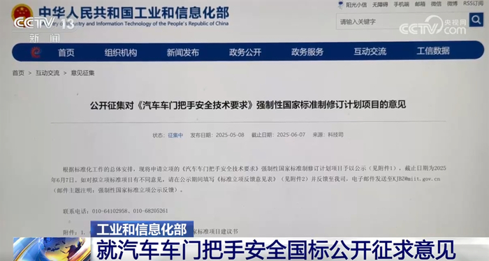 工业和信息化部就汽车车门把手安全国标公开征求意见