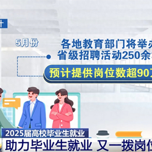 央视网消息:眼下正值高校毕业生就业关键期,教育部即将启动2025届高校毕业生就业“百日冲刺”行动,通过精准拓展就业岗位、优化就业服务,促进高校毕业生就业。