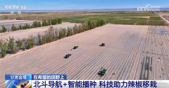 甘肃金塔:北斗导航+智能播种 科技助力辣椒移栽