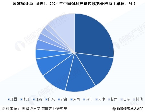根据国家统计局披露的数据显示,2024年全国累计铜材产量2350.3万吨,其中,产量排名前三的省份分别是江西、浙江和江苏,占比分别为27%、14%和13%。具体汇总如下: