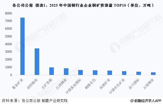 从铜储量来看,根据各公司公报披露的数据显示,截至2023年底,紫金矿业铜矿资源量高达7456万吨,排名全国第一;洛阳钼业铜矿资源量为3464万吨,排名第二;五矿资源铜矿资源量排名第三,为1012万吨。整体来看,紫金矿业铜矿资源优势明显。