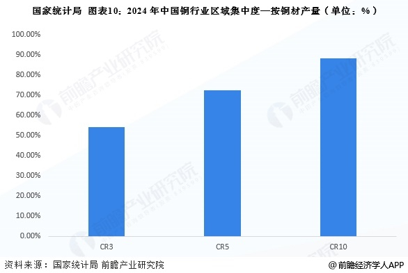 从铜材产量来看,我国铜行业区域集中度同样维持较高水平,根据国家统计局披露的数据,2024年我国铜行业CR3为53.94%,CR5为72.44%,CR10则高达88.16%。