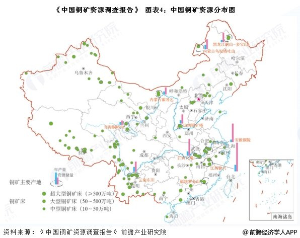 我国铜矿资源主要分布在西藏、江西、内蒙古以及云南等地,合计占比超过60%。此外,安徽、黑龙江、甘肃、新疆和山西相较于其他省份也有较为丰富的铜矿资源,以上省份铜资源储量合计占我国总储量的90%以上。