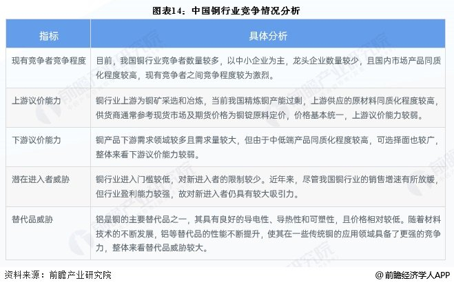 从五力竞争模型角度分析,目前我国铜行业竞争情况如下: