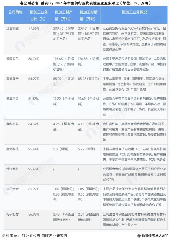 行业主要上市公司:海亮股份(002203);江西铜业(600362);博威合金(601137);鑫科材料(600255);铜陵有色(000630)等