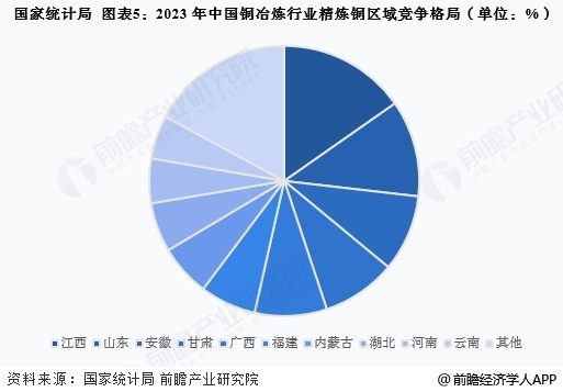 从精炼铜产量来看,我国铜行业区域集中度较高,根据国家统计局披露的数据,2023年我国铜行业CR3为36.01%,CR5为53.54%,CR10则高达82.88%。