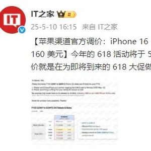 今年的618活动将于5月13日开始,因此有渠道商认为苹果此次调价就是在为即将到来的618大促做准备。