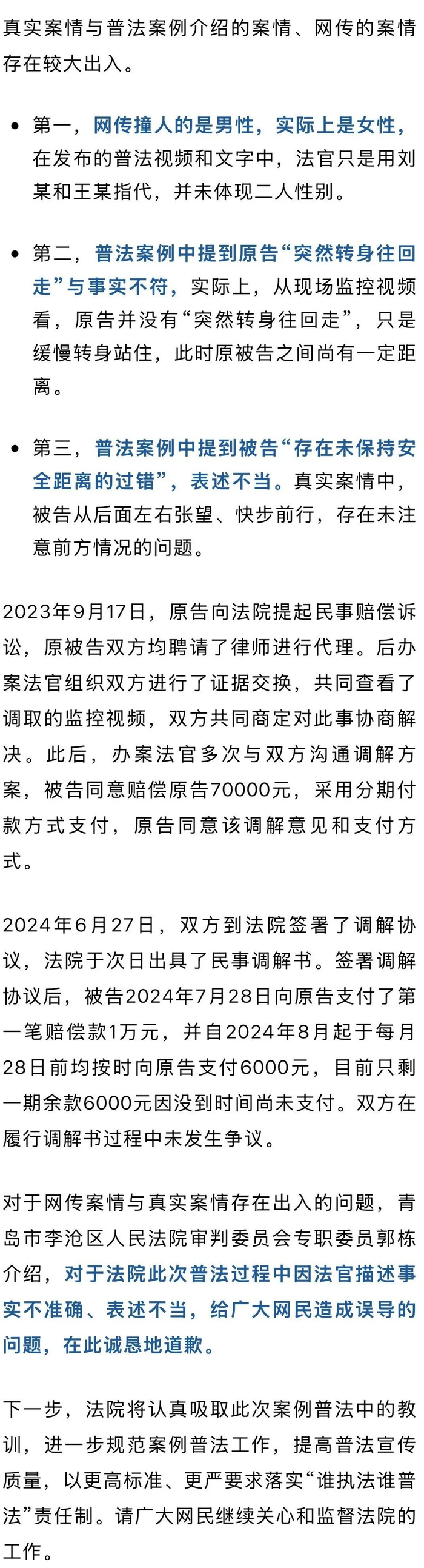 大妈突然转身被行人撞倒获赔7万元?法院公布真实案情和视频并道歉