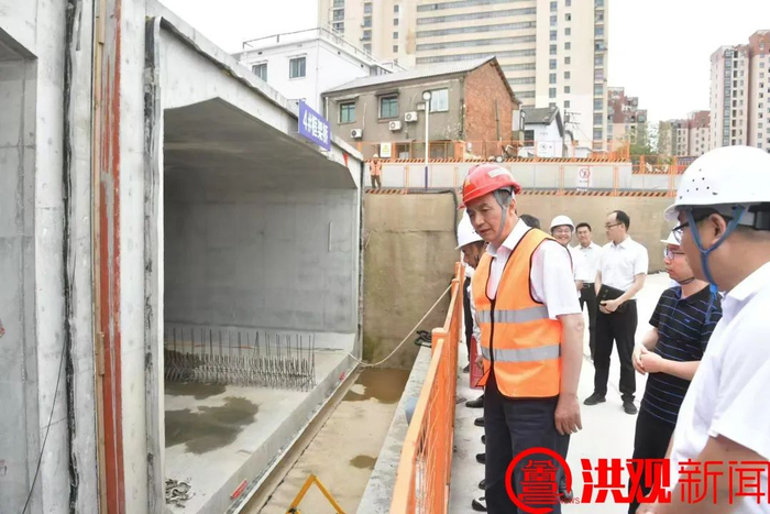 广州路下穿京九铁路隧道工程非涉铁段京九铁路以西调蓄池围护结构、主体结构底板等已完成,火电小区围护结构地连墙已完成;涉铁段东、西侧预制基坑围护结构全部完成,2#框架桥顶进完成,3#框架桥计划5月14日顶进,预计6月30日完成全部涉铁段预制框架桥顶进,9月30日实现主线通车。城南大道提升改造工程已完成东西两侧非机动车道路面铣刨和摊铺沥青,正按照交通导改方案对西面机动车道路面进行铣刨、雨水改造等工作。李红军现场听取有关工作汇报,详细了解施工组织、交通导改等情况。他强调,要加强施工组织,统筹施工力量,强化施工全过程管理,在确保安全和质量的前提下,推动项目早日建成、早日通车。要结合道路建设,进一步推动城市家具合理布局,持续优化窨井盖、电箱等设施,统筹做好管线迁改工作,让新路段新区域呈现新面貌,切实展现城市形象、提升城市功能品质。