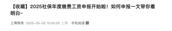 一、上海市:2025社保年度缴费工资申报已于2025年5月1日正式启动