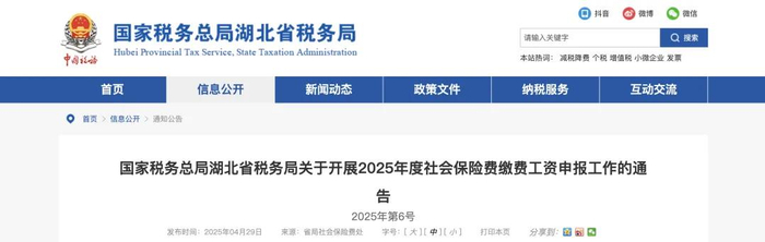 二、湖北省:5月1日起开始申报2025年度社会保险费缴费工资