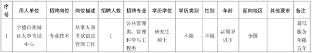 宁德市蕉城区人力资源和社会保障局下属事业单位公开招聘紧缺急需及高层次人才1名