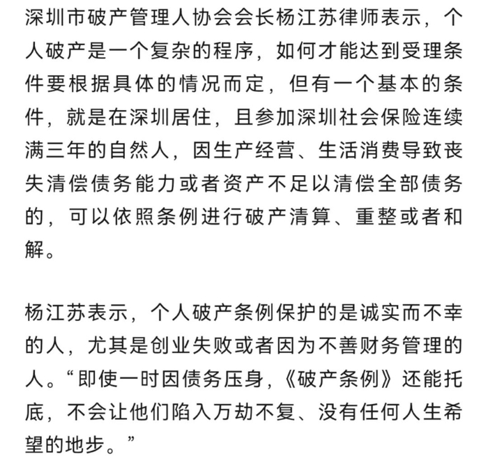 以深圳此前出台的条例为例,对于恶意逃债或破产欺诈的债务人,不仅不能通过破产逃避债务,还要通过法律手段加以预防和惩治,法院对债务人的所有收入来源和财产进行控制,保证破产救济与信用教育并举。