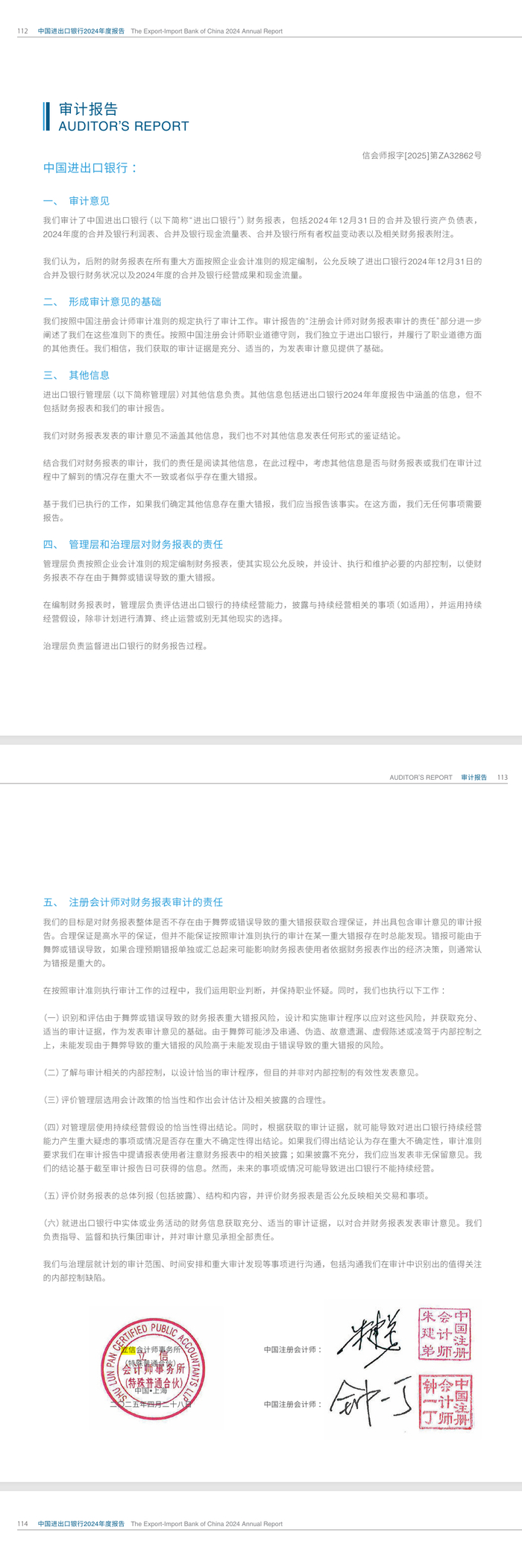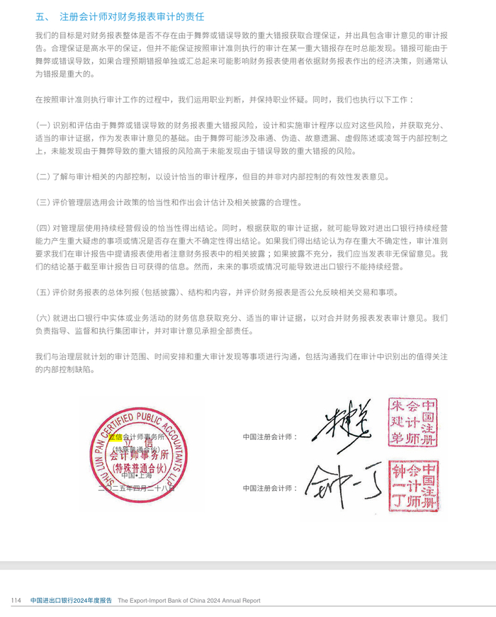 老牌审计大佬,签字体现对进出口银行海外复杂业务的掌控力,但也暗示“不敢得罪客户”,可能妥协于银行管理层的会计处理偏好。
