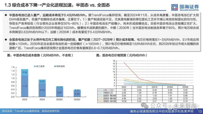 综合成本下降→产业化进程加速:半固态 vs. 全固态