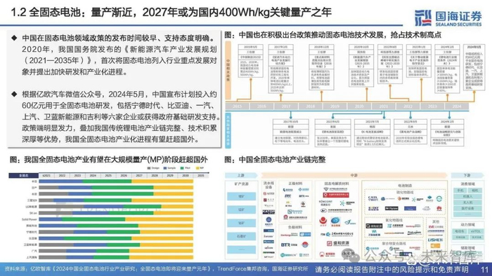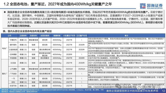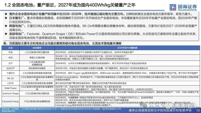 全固态电池:量产渐近,2027年或为国内400Wh/kg关键量产之年