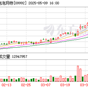 伴随新品热销,泡泡玛特股价也在二级市场收获大涨。截至5月9日收盘,泡泡玛特涨6.76%,报191.1港元/股。年初至今,其股价累计上涨超100%。近一年来,泡泡玛特股价涨幅超440%,最新市值在2500亿港元以上。