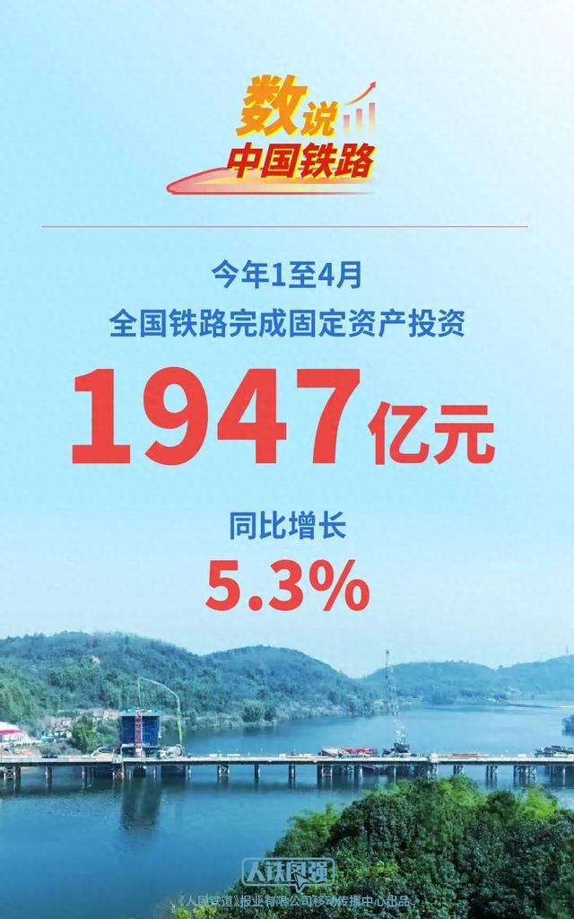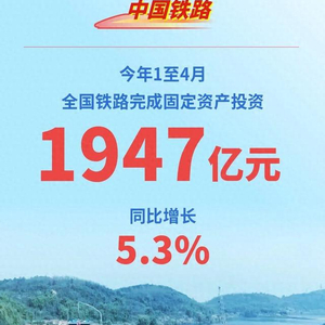 今年1至4月,铁路建设优质高效推进,全国铁路完成固定资产投资1947亿元,同比增长5.3%,充分发挥铁路建设投资对经济的拉动作用,积极为经济持续回升向好注入新动能。