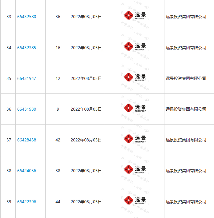 另外,远景能源在2024年10月29日4申请的44个不同类别的“远景”商标,均受于实质性审查阶段。