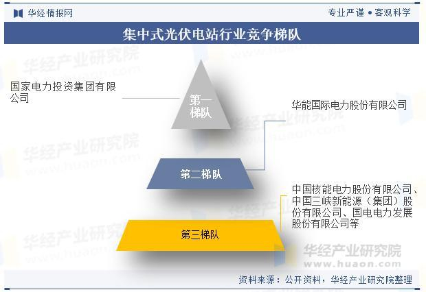 中国集中式光伏电站行业的市场集中度高,呈现“一家独大”的势态。集中式光伏电站行业分为三个梯队:第一梯队为国家电力投资集团有限公司;第二梯队为华能国际电力股份有限公司;第三梯队包括中国核能电力股份有限公司、中国三峡新能源(集团)股份有限公司、国电电力发展股份有限公司等。